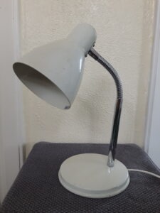 Bureaulamp. Wit. Boxford Holland. Diameter voet 15 cm. Diameter lamp 11 cm. Hoogte stand op de foto 30 cm. In goede vintage staat
