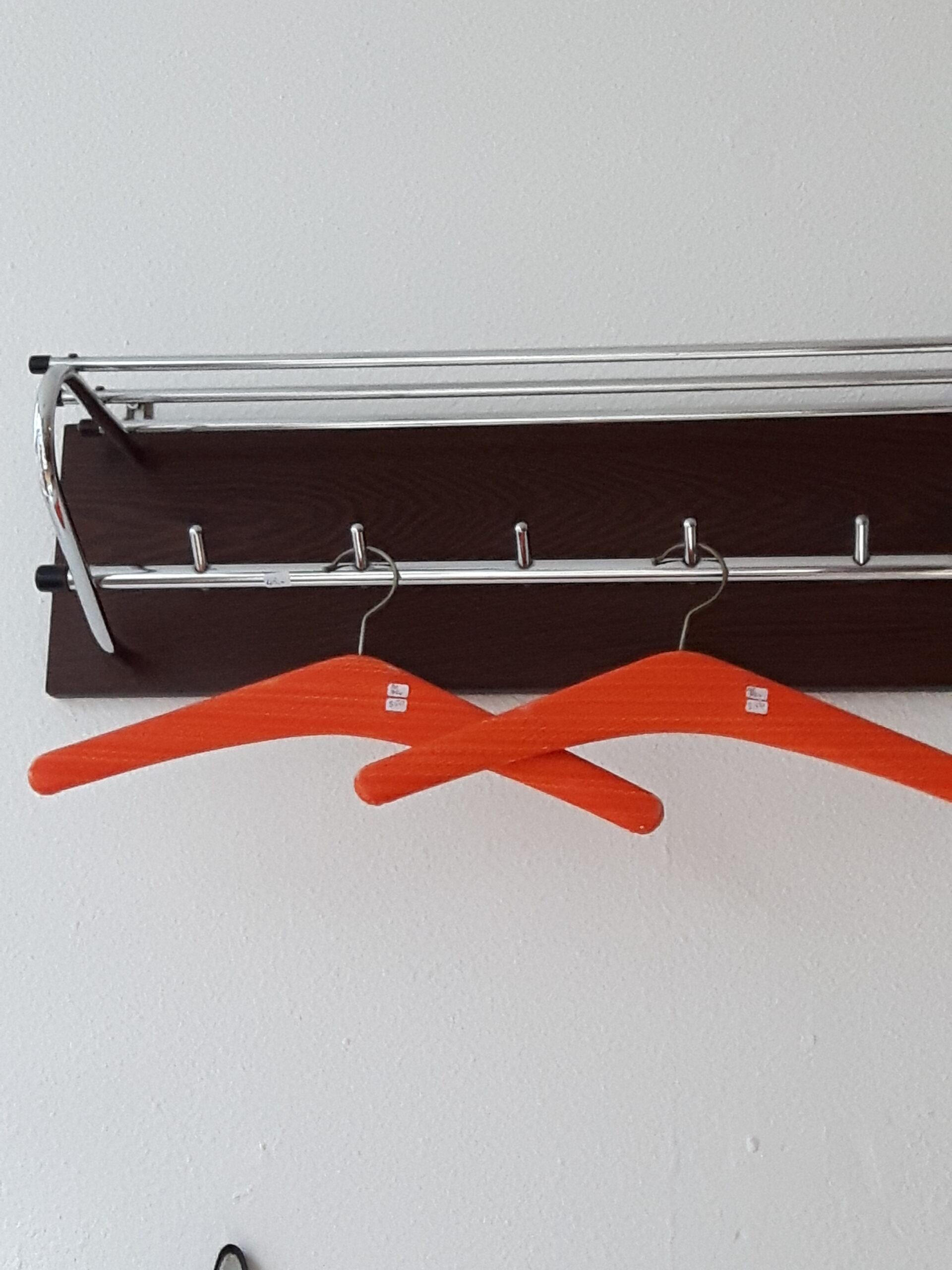 Kapstok van metaal met een houten achterstuk. Breedte is 70 cm. de hoogte is 20 cm. Alleen op te halen in de winkel.