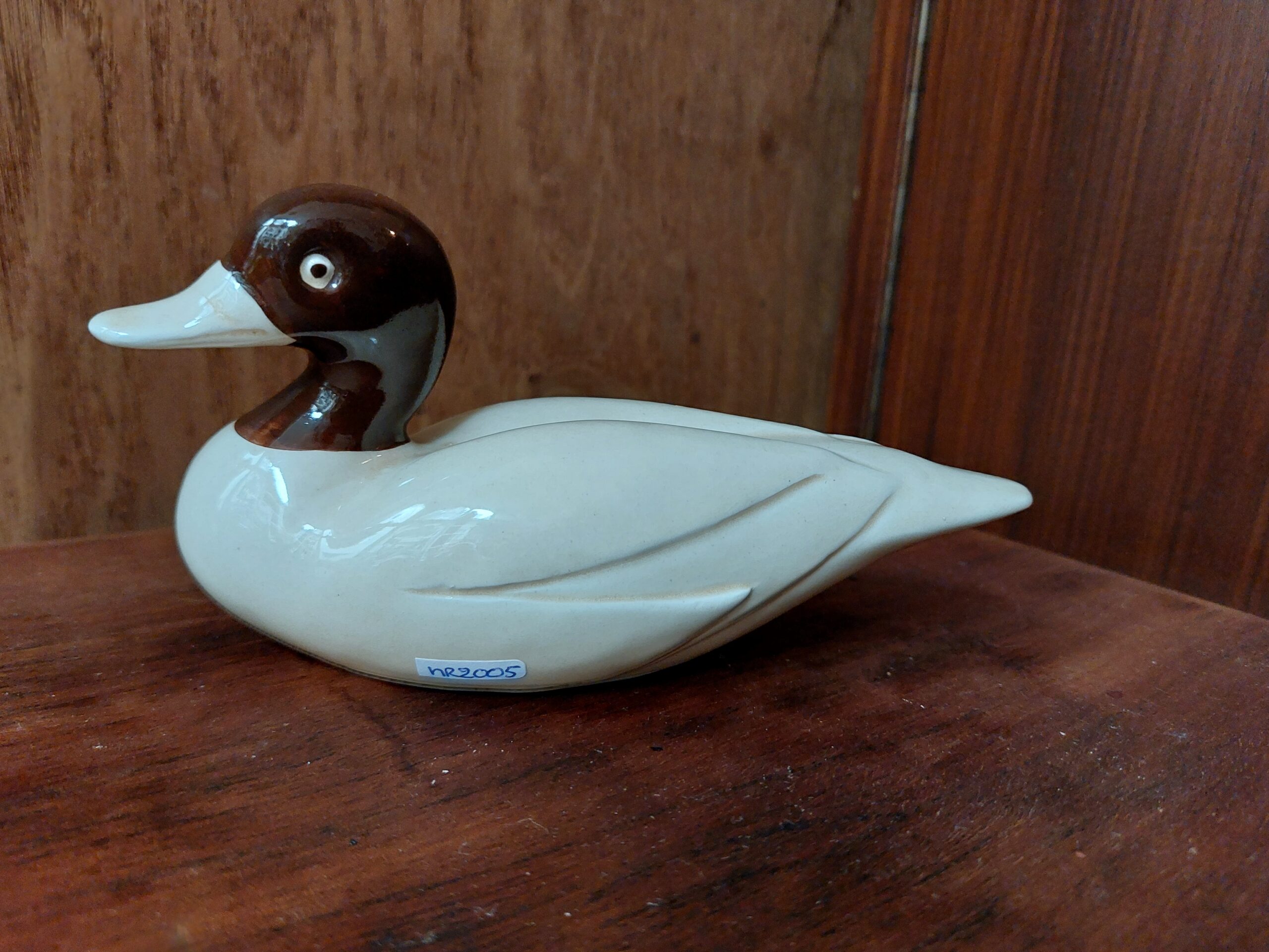 Porseleinen eend in de kleuren bruin en roomwit. Lengte 15 cm. Hoogte 7.5 cm. (waarschijnlijk creative Selection London sw2)