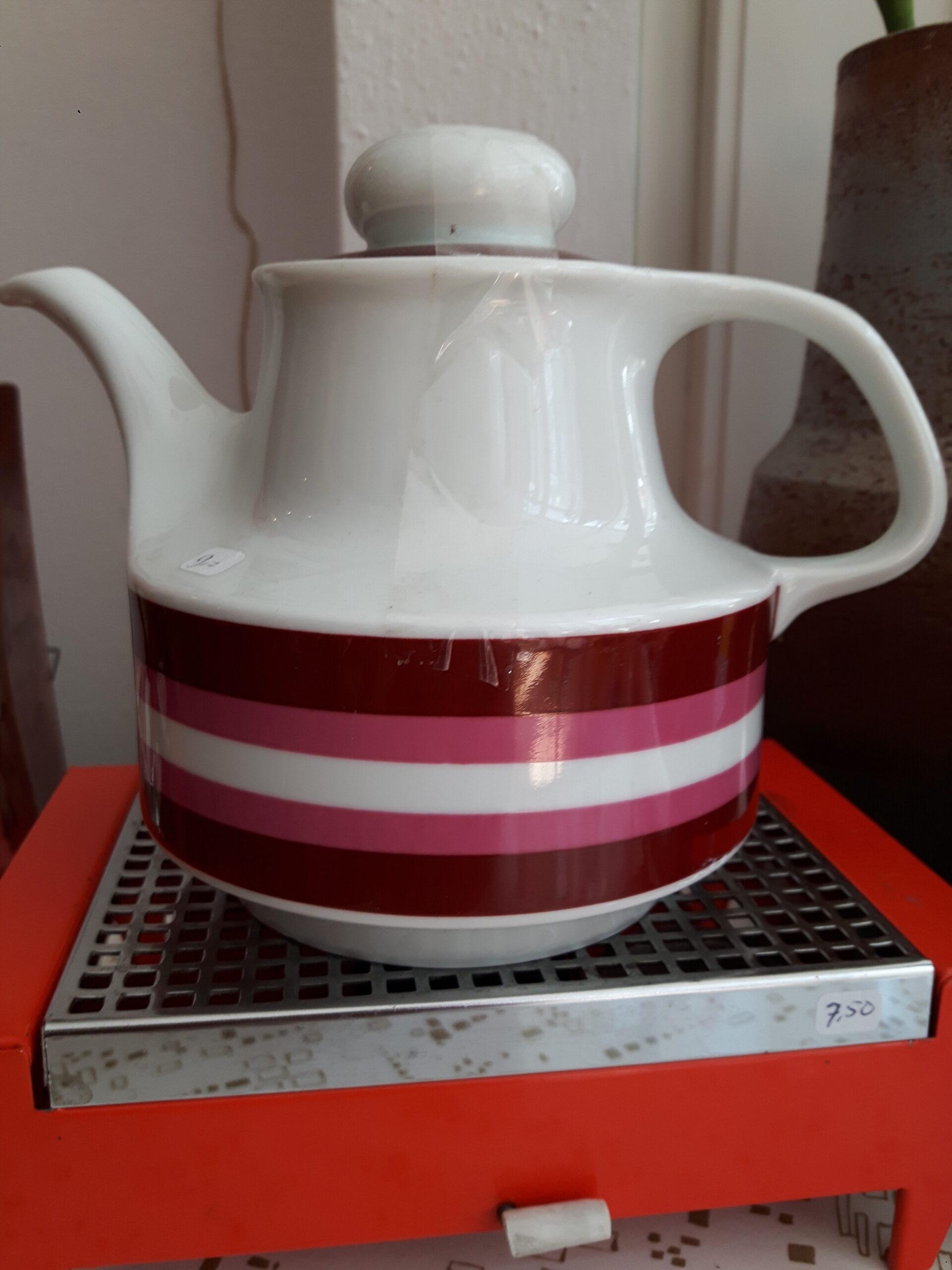 Theepot van aardewerk. In de kleuren wit, bruin en lila. Bavaria Germany. Helemaal gaaf. Hoogte 12,5 cm.
