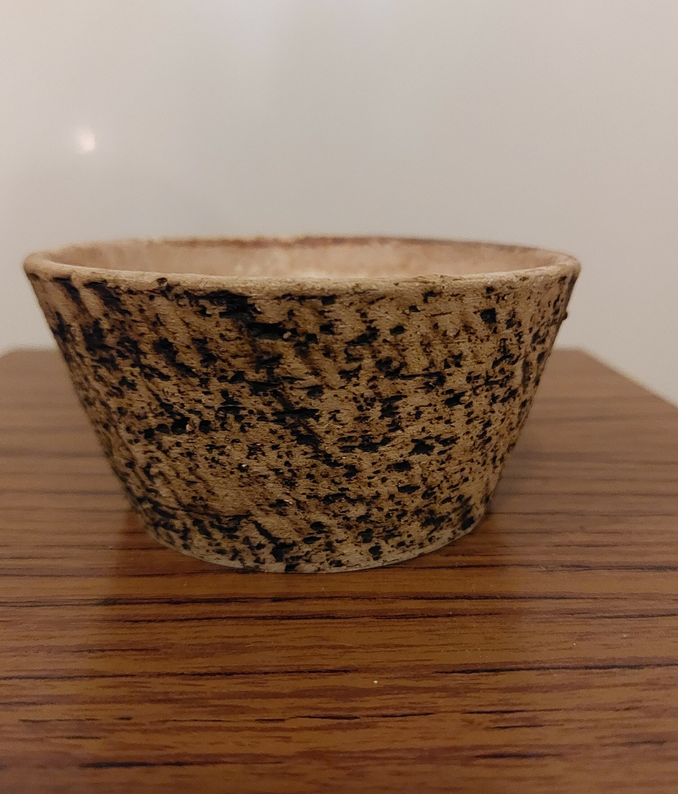 Bloempotje van berkenbast. Geschikt voor een cactus of vetplantje. Hoogte is 5.5cm. en de diameter is 11cm.