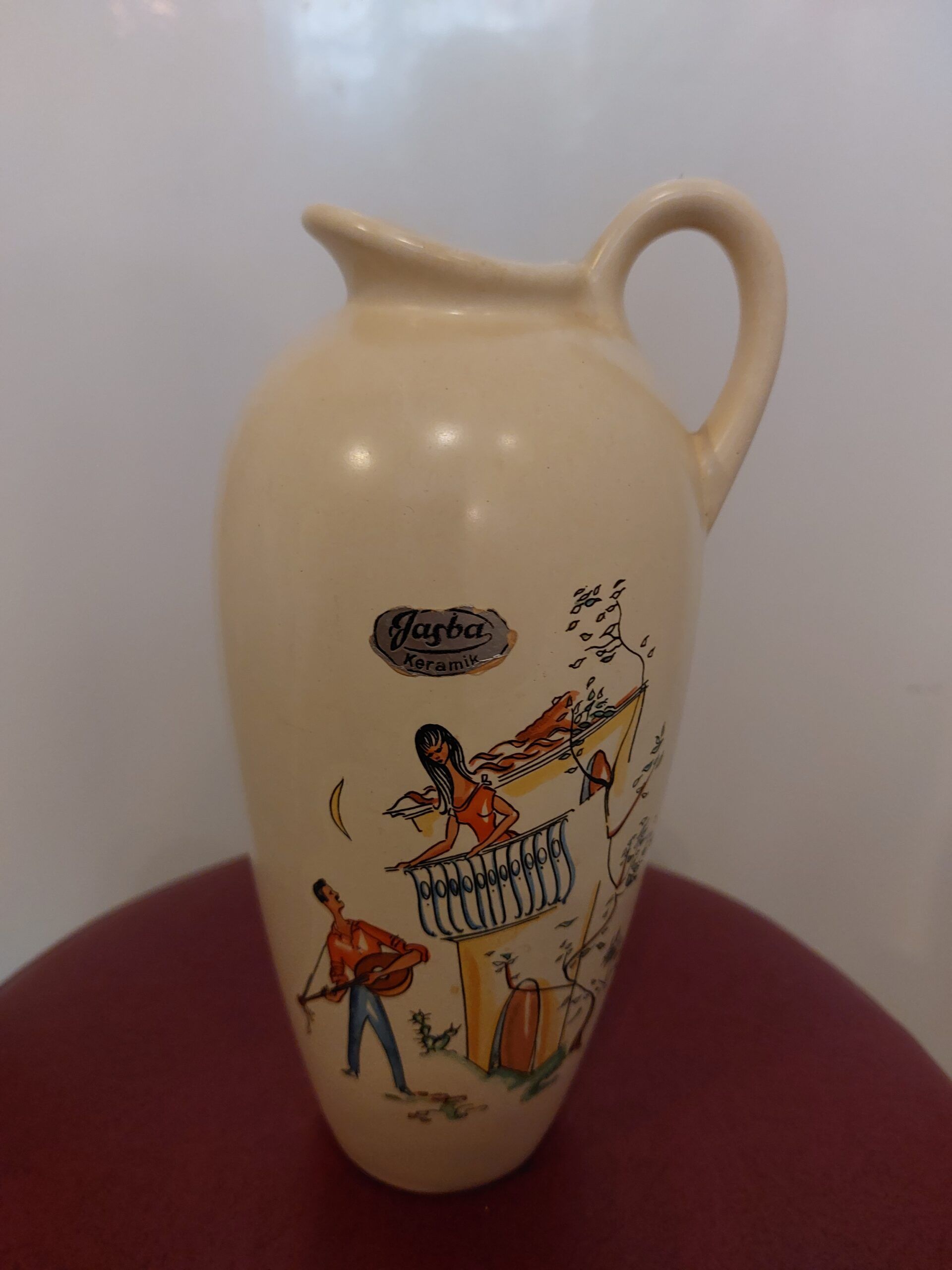 West Germany oorvaas. Jasba keramiek 603. met een vrolijk tafereel. Hoogte 22 cm. In goede conditie.